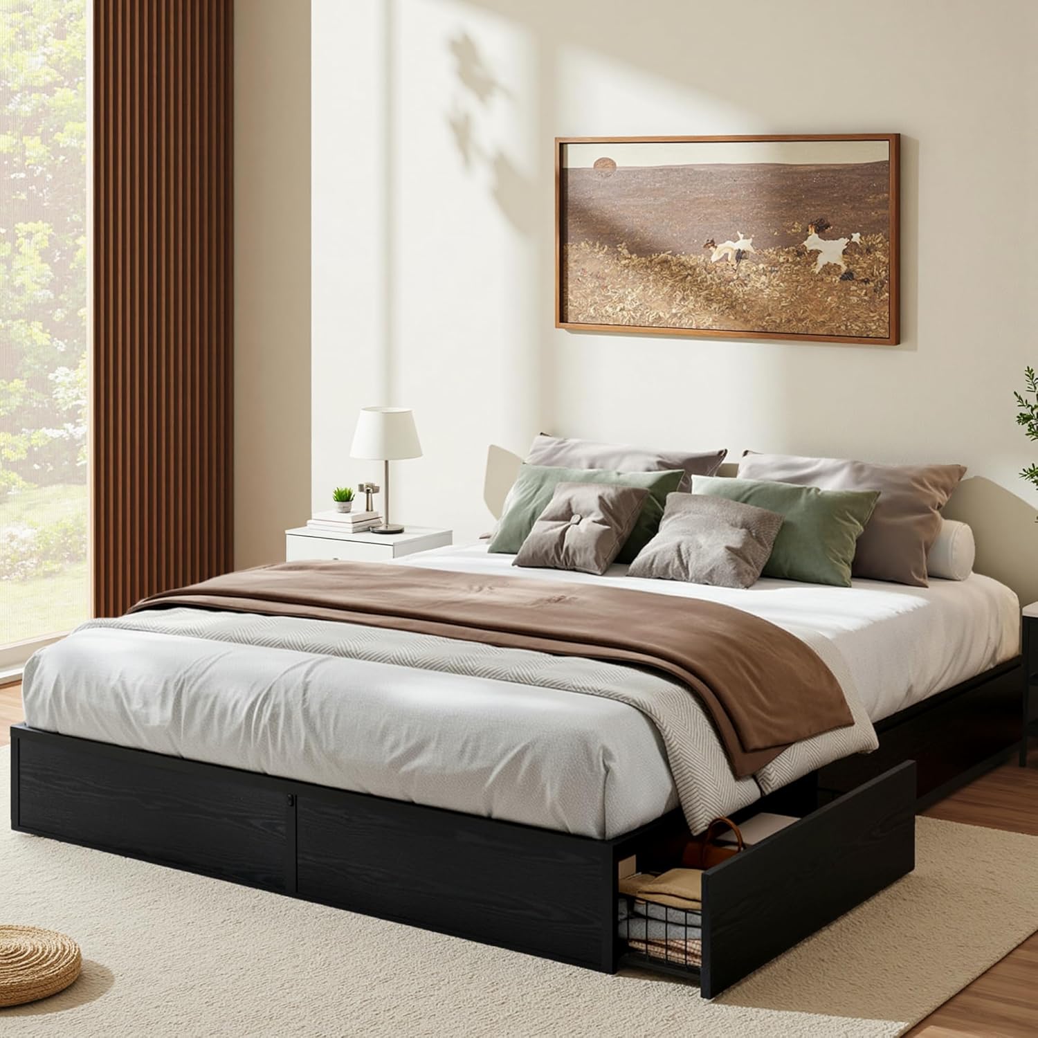 - Flexible Storage Drawers: Designed with 2 spacious storage drawers that can be installed on either side of the bed, offering flexible layout options for different room setups. Perfect for storing bedding, clothes, or seasonal items.